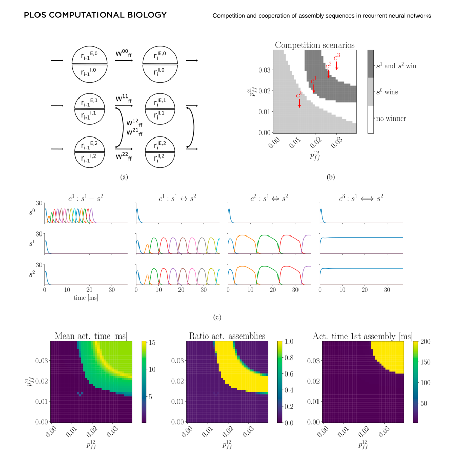 Competition and cooperation of assembly sequences in recurrent neural networks
